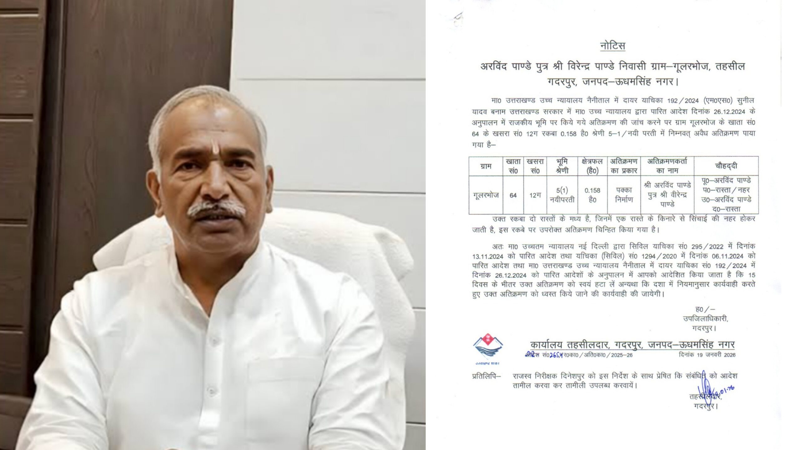 अतिक्रमण को लेकर एक्शन में धामी सरकार, पूर्व कैबिनेट मंत्री अरविंद पांडेय भी आए जद में